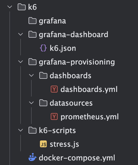 이를 실행하면 k6가 개별 컨테이너에서 부하테스트를 진행, 결과 데이터들이 Prometheus > Grafana 흐름으로 전달된다.