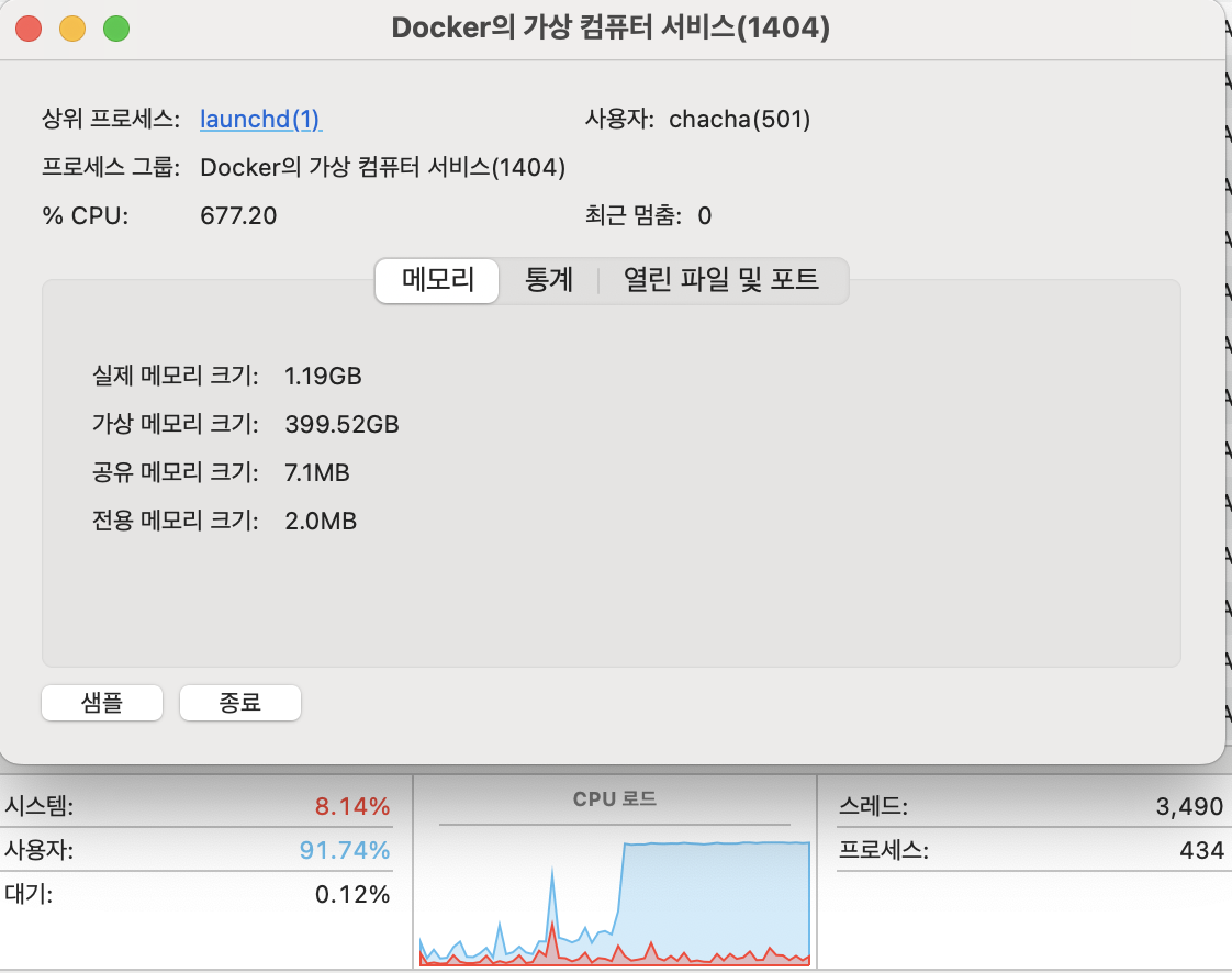 예약 서비스 로직을 부하 테스트를 돌리면서, Load Test 때와 Stress Test 때의 CPU와 메모리 사용량을 봤는데, 두 가지가 비슷한 양상을 보였다.