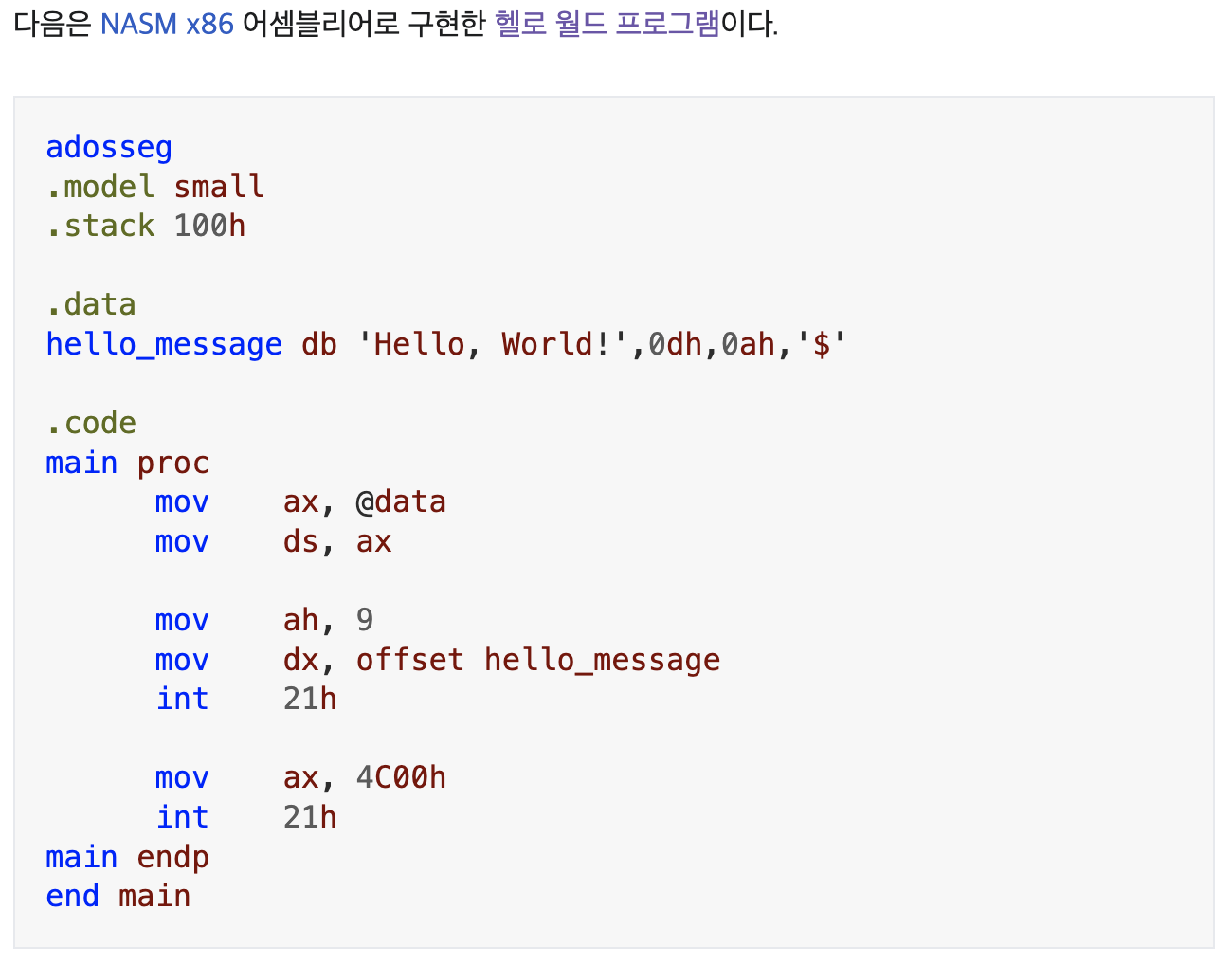 아직 어셈블리어는 우리가 일상적으로 사용하는 언어 형식과는 많은 차이가 있으며 여전히 저수준 언어(low-level language)이다.