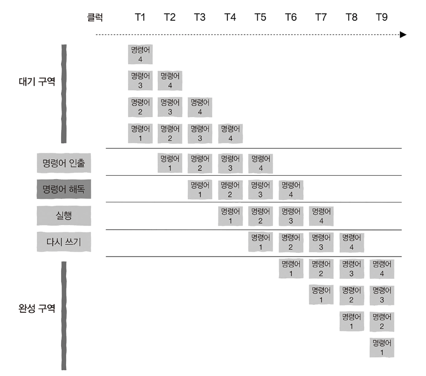 의 네 단계로 구분할 수 있고, 각 단계는 파이프라인 방식으로 실행된다.