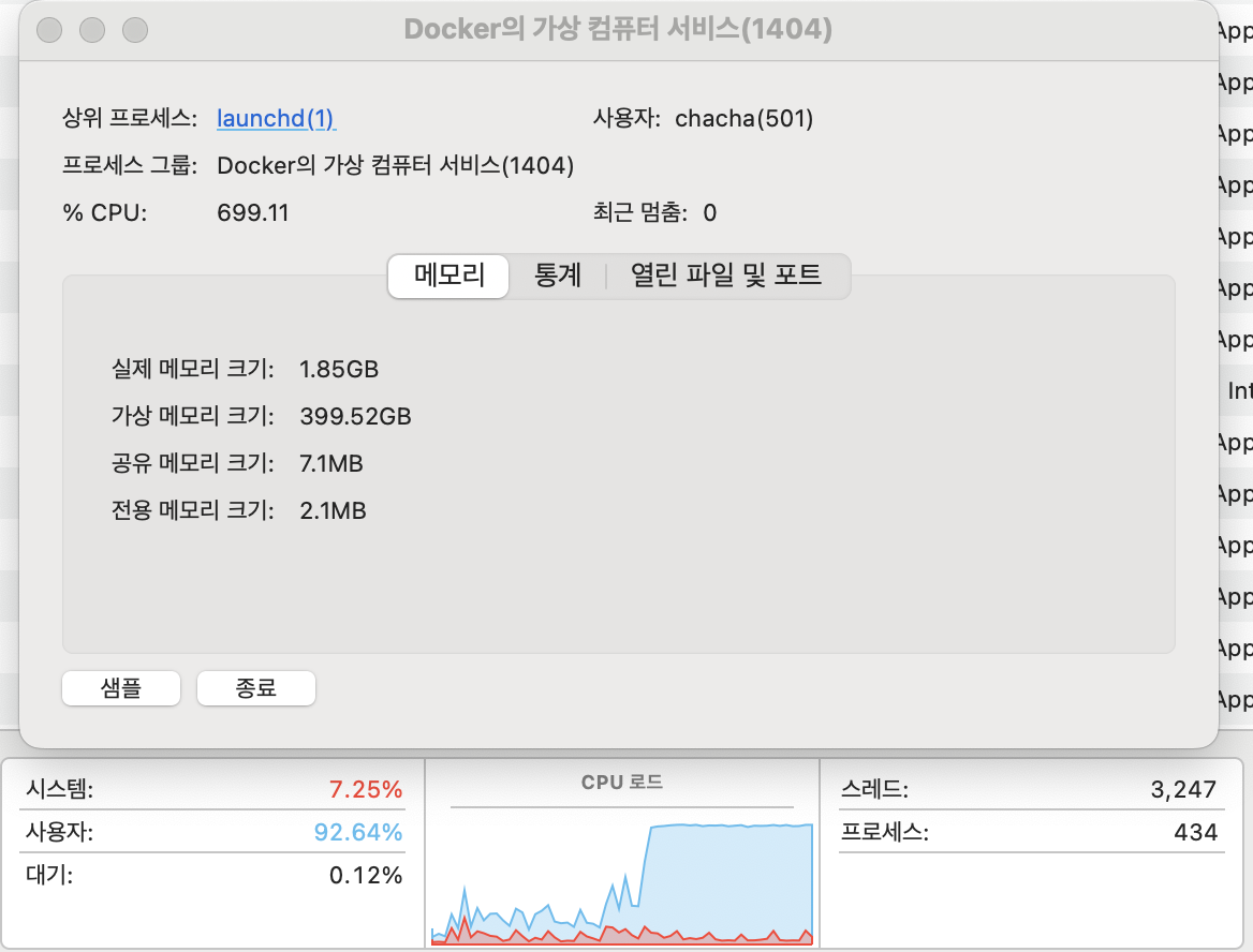 예약 서비스 로직을 부하 테스트를 돌리면서, Load Test 때와 Stress Test 때의 CPU와 메모리 사용량을 봤는데, 두 가지가 비슷한 양상을 보였다.