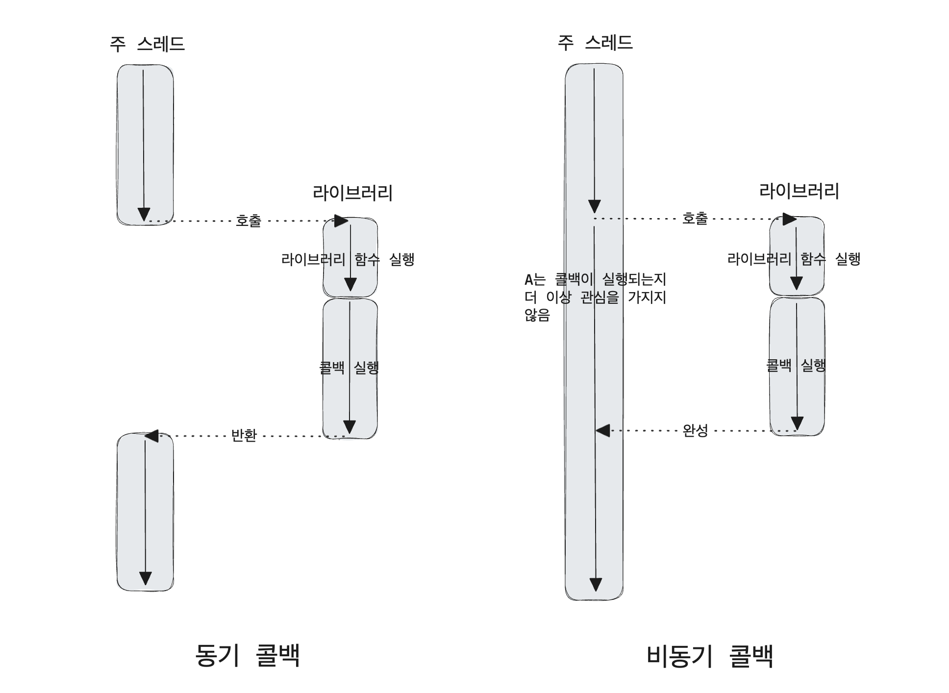 동기 콜백과 비동기 콜백의 흐름을 나타내보면 아래와 같다.