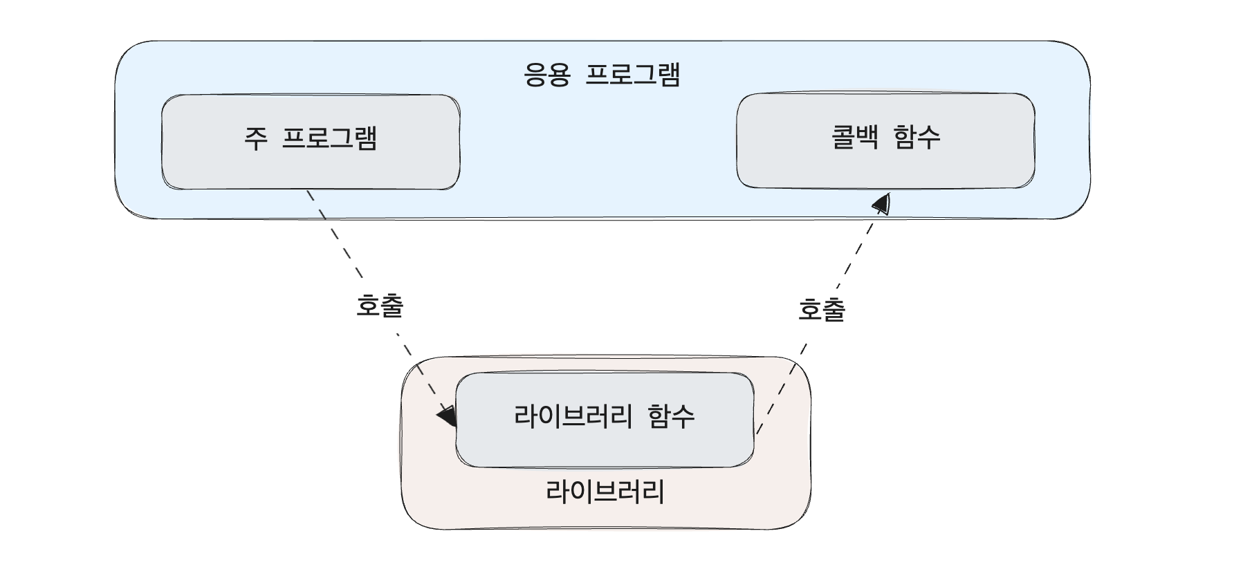 콜백 함수 코드는 프로그래머가 구현하지만, 호출하는 것은 보통 다른 모듈이나 스레드이다.