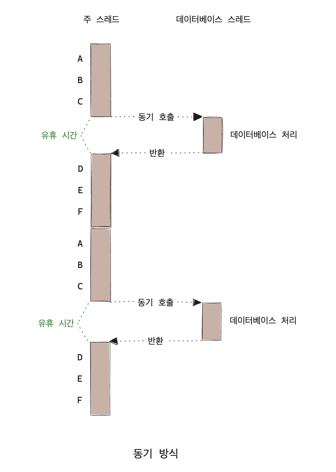 이 유휴 시간 동안 데이터베이스 처리가 완료될 때까지 기다려야 다음 과정을 처리할 수 있어 비효율적이다.