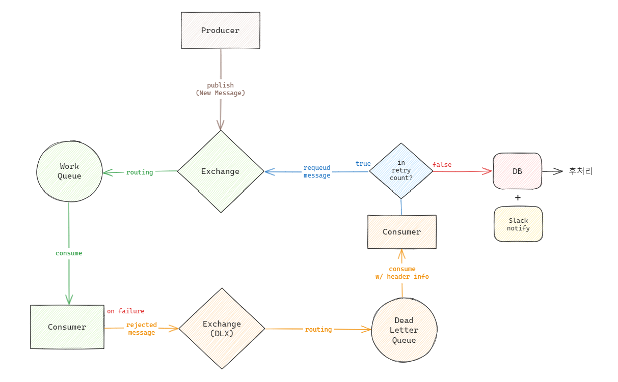 Consumer에서 예외 발생 시 DLX로 Queuing된 메시지를 n번 재시도 후 처리하는 로직을 추가한다.