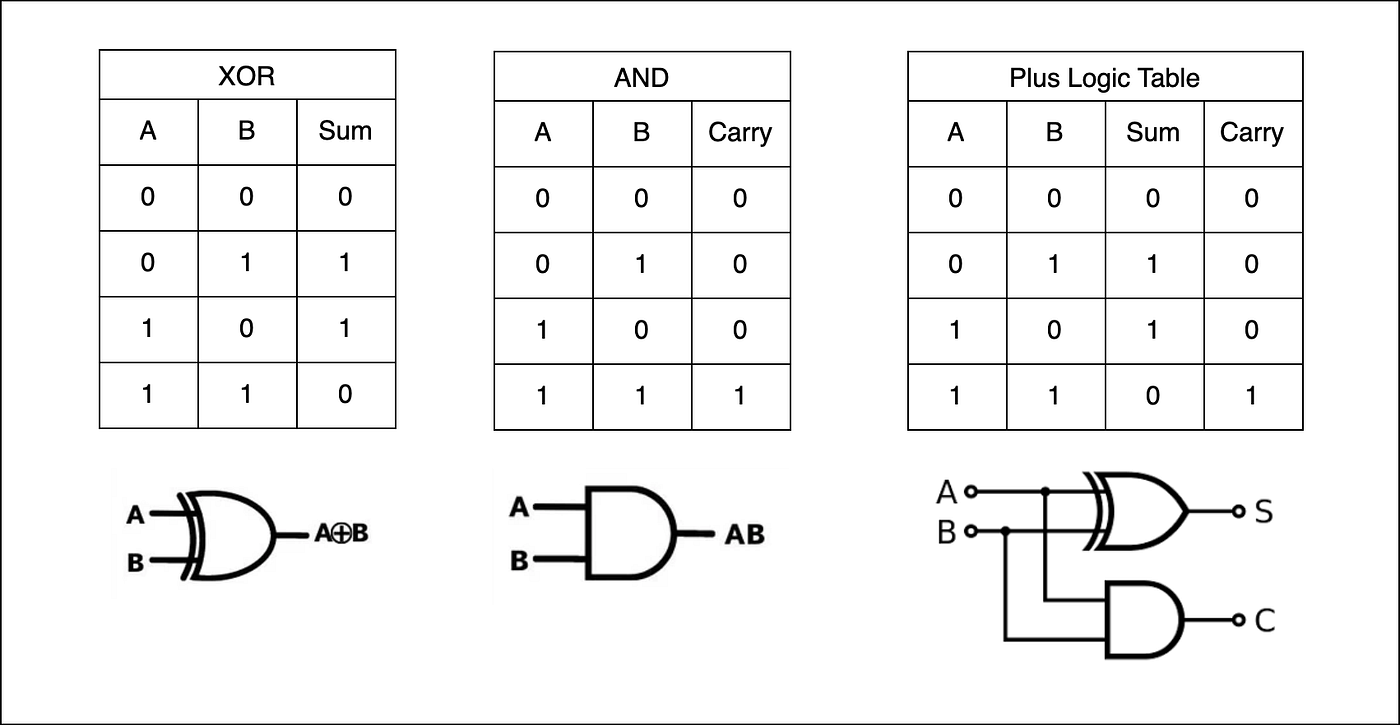 e.g. 가산기(Adder) 배타적 논리합과 논리곱의 조합