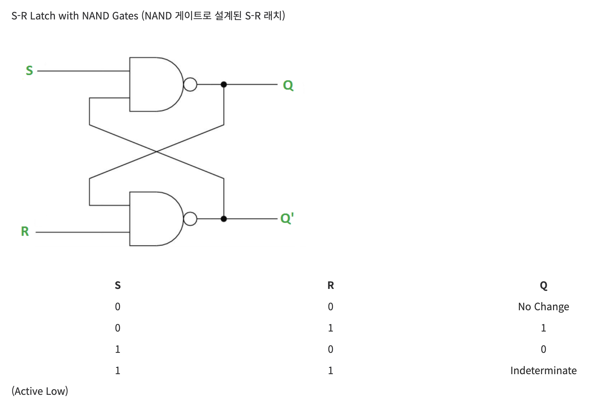 이 방법을 S-R 래치(set-reset latch) 구조라고 한다.
